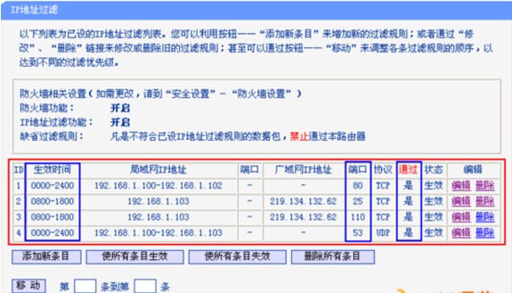 图:路由器过滤IP地址从而过滤网站的截图